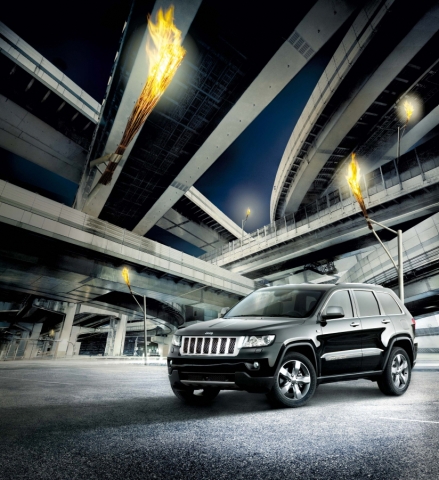 그랜드 체로키 오버랜드 서밋은 크롬 가니쉬가 적용된 프론트 7-슬롯 메쉬 그릴과 함께 베젤 부분을 크롬으로 강조한 안개등, 20인치 고광택 알루미늄 휠을 장착했다.