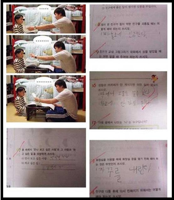 두 사람이 공부하는 문제지에는 ‘산에서 밥을 지어 먹으면 안 되는 까닭은?'이라는 질문에 아들은 ‘거지로 오해받을 수 있기 때문’이라고 답했다.