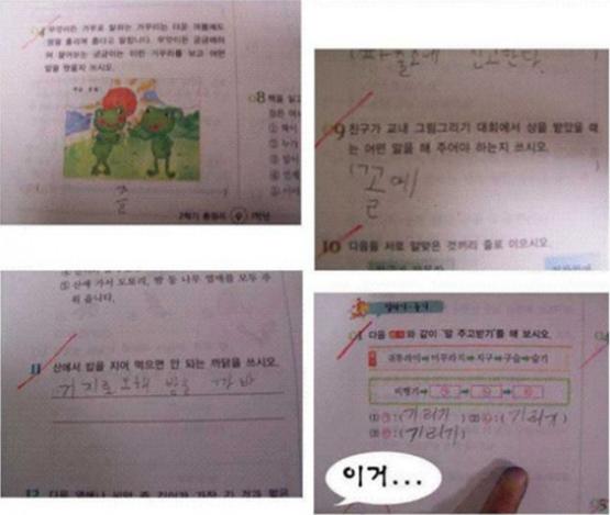 또 ‘친구가 교내 그림그리기 대회에서 상을 받았을 때 어떤 말을 해 주어야 하는가’라는 문제에는 ‘꼴에’라는 진심어린 답변을 해 폭소를 자아낸다.