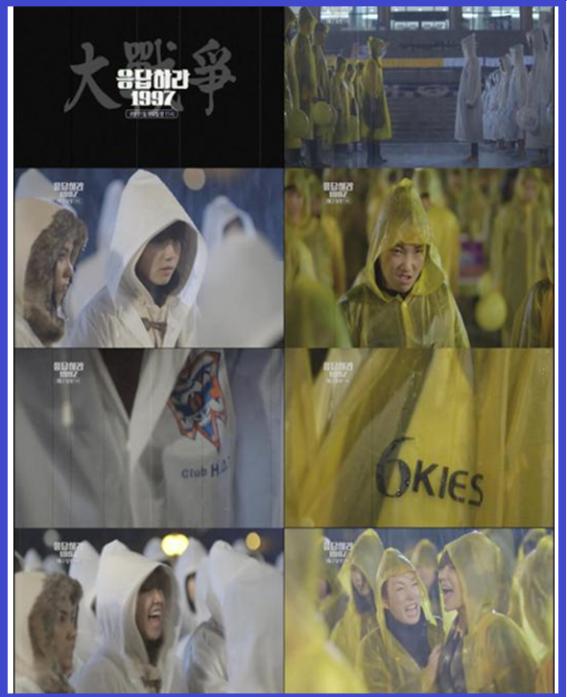 라이벌인 두 팬덤의 충돌 사건을 그린 '1997 전설의 대전쟁'은 예고편 영상에는 팬덤 색을 상징하는 우비를 입고 신경전을 벌이는 모습이 담겨있다.