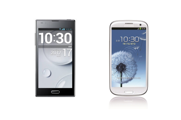 ▲좌측부터 LG전자 '옵티머스 LTE2', 삼성전자 '갤럭시S3 LTE'