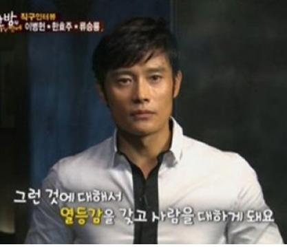배우 이병헌이 자신의 열등감을 고백해 화제다.