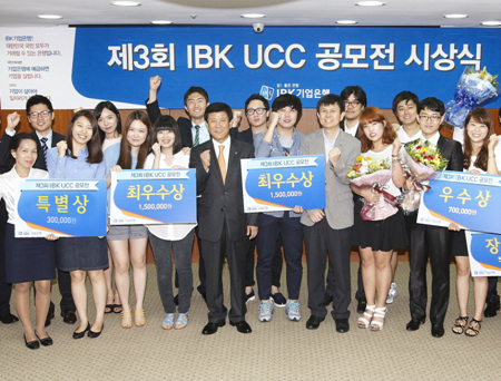 기업은행은 최우수상에 150만원, 우수상과 장려상에 각각 70만원과 50만원의 포상을 수여했으며, 수상자 전원에게는 청년인턴 채용시 서류전형 면제의 특전을 준다. 이번 공모전 수상작은 IBK기업은행 UCC공모전 홈페이지(ucc.ibk.co.kr)에서 확인할 수 있다.