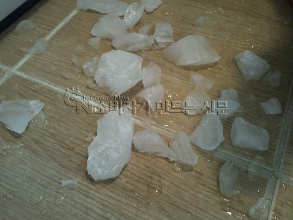 냉동실에 있는 물건을 모두 꺼내고 얼음을 깨는 작업을 수차례 반복했습니다. 냉동실의 모든 칸에 사진과 같은 얼음이 생겨서 수시로 얼음 제거를 해야하는 불편함이 이루 말할 수가 없네요.