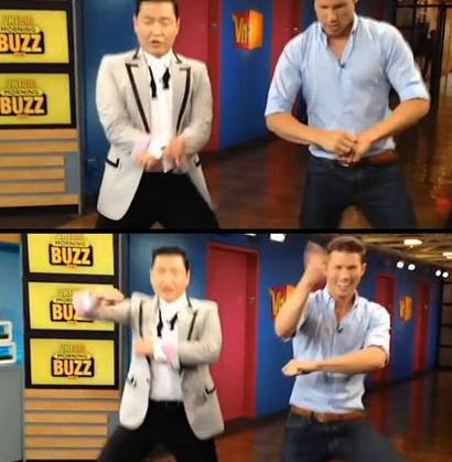 싸이는 22일 미국의 음악·엔터테인먼트 전문 채널 VH1의 생방송 '빅 모닝 버즈 라이브(Big Morning Buzz Live)'에 출연하여 신곡 '강남스타일'의 뮤직비디오를 소개하는 한편 진행자들과 '강남스타일'의 포인트 안무 '말춤'을 선보였다.