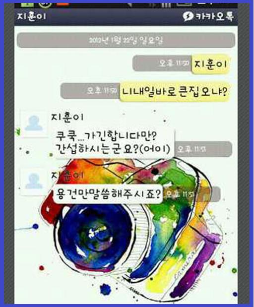 화면에는 "지훈이 니 내일 바로 큰집오냐?"라고 묻는 질문에 사촌동생은 "쿠쿡.. 가긴합니다만? 간섭하시는군요?(어이) 용건만 말씀해주시죠?"라고 답해 황당함을 자아낸다.