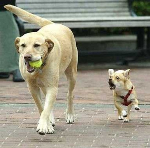 공개된 사진은 두 마리의 강아지가 길을 걷고 있는 모습이 담겨 있다. 큰 강아지는 입에 테니스공을 물고 거리를 걷고 있고 옆의 작은 개는 큰 개를 보며 짖고 있어, 마치 동생의 물건을 뺏는 형처럼 보인다.