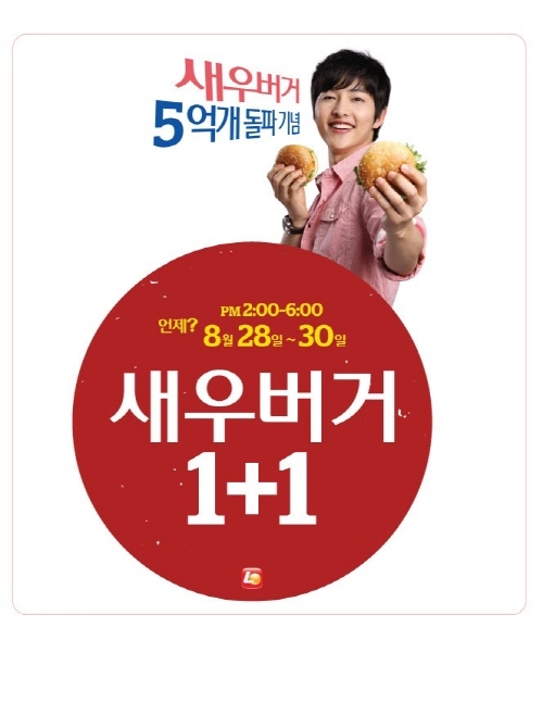 URL복사 기사공유하기 스크랩 프린트 메일보내기 글씨키우기 롯데리아는 새우버거 누적 판매량 5억개 돌파를 기념해 '새우버거 1+1 프로모션'을 펼친다고 27일 밝혔다.이번 행사는 오는 28일부터 30일까지 3일 동안 진행되며, 오후 2시부터 6시까지 새우버거를 사면 한 개를 더 준다. 저작권자 © 소비자가 만드는 신문 무단전재 및 재배포 금지 이경주 기자 다른기사 보기 URL복사 기사공유하기 주요기사 쿠팡 정보유출 사고로 피싱 시도 가능성 높아... 금융당국 '소비자경보' 발령 김동연 지사, 내년에도 다보스포럼 간다...3년 연속 공식 초청 받아 금호타이어, 폴란드 오폴레 지역에 첫 유럽 공장 짓는다...2028년 8월 가동 예정 국산차 11월 판매 3.9%↓, KGM만 웃었다...베스트셀링카는 ‘쏘렌토’ 김동연 지사, 기후보험 전국 확대 방안 논의..."대한민국의 뉴노멀로" 한신평, 키움·메리츠증권 등급 전망 '긍정적'으로 상향