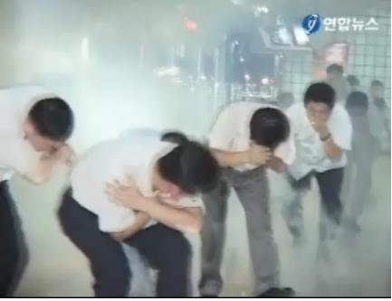이 화재로 출동한 소방대원에 의해 불은 20여분 만에 잡혀 전동차 내부로는 번지지 않았다. (사진-연합뉴스 화재 대응 훈련 영상(기사 내용과 관련없음))