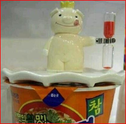 게재된 '귀여운 컵라면 타이머' 사진에는 돼지 형상을 한 모래시계의 모습이 담겨 있다.