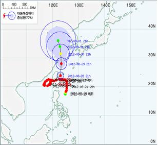 한편, 일본 오키나와를 강타하고 북상중인 볼라벤은 오는 28일 오후 2시께 서울에 가장 근접한 위치에 도달할 것으로 보고 있다.