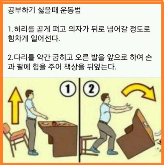 최근 한 온라인 커뮤니티 게시판에는 공부하기 싫을 때 운동법이라는 게시물이 올라왔다.