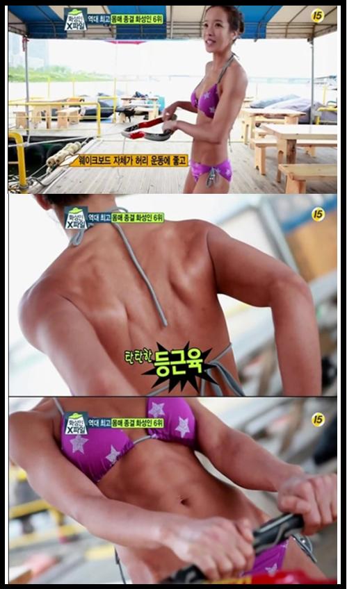 말근육녀 신현아 씨는 검게 그을린 피부와 탄탄한 복근으로 '역대 최고 몸매 종결 화성인' 6위에 올랐다.