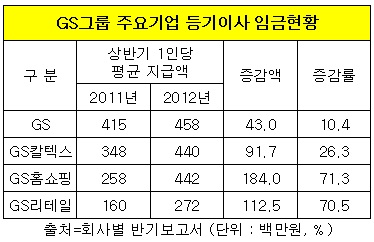 GS그룹 관계자는 등기임원의 임금인상률이 늘어난 것에 대해 "올 상반기 성과급이 반영됐기 때문"이라고 전했다.