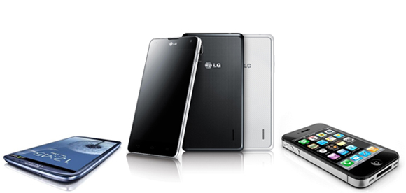 ▲ 좌측부터 삼성전자 '갤럭시S3', LG전자 '옵티머스 G', 애플 '아이폰4S'