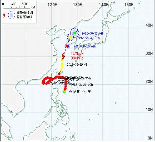 북상 중인 제14호 태풍 덴빈(TEMBIN)이 30일과 31일 수도권을 관통하겠다.