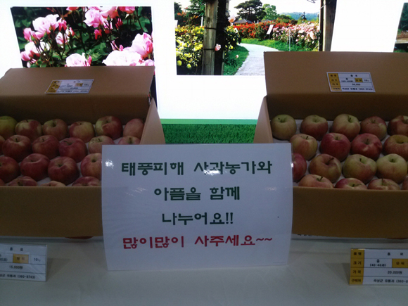 곡성군(군수 허남석)은 수확을 앞두고 태풍 볼라벤으로 낙과 피해를 본 농가들의 시름을 덜어주기 위해 ‘낙과 사주기 운동’을 전개하고 있다.