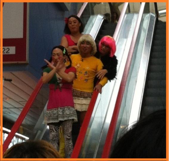 사진에는 박명수와 길, 유재석 정준하가 여장을 하고 에스컬레이터에 서 있는 모습이다.