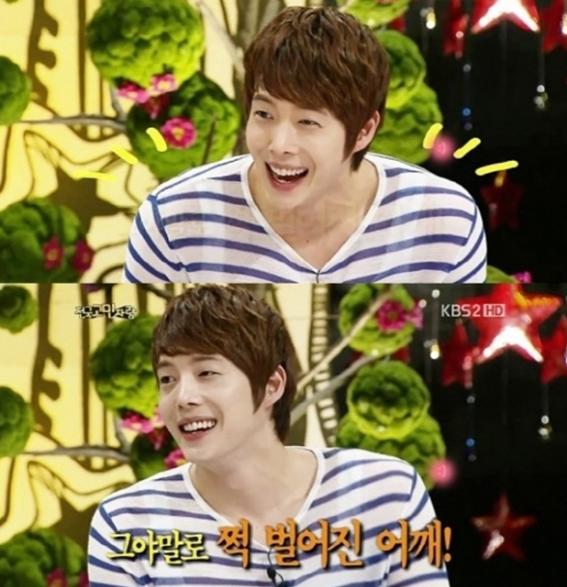 이 사진은 강동호가 KBS2 '안녕하세요'에 출연한 모습으로 그는 작은 얼굴과는 대조적으로 넓은 어깨를 선보여 눈길을 끈다.