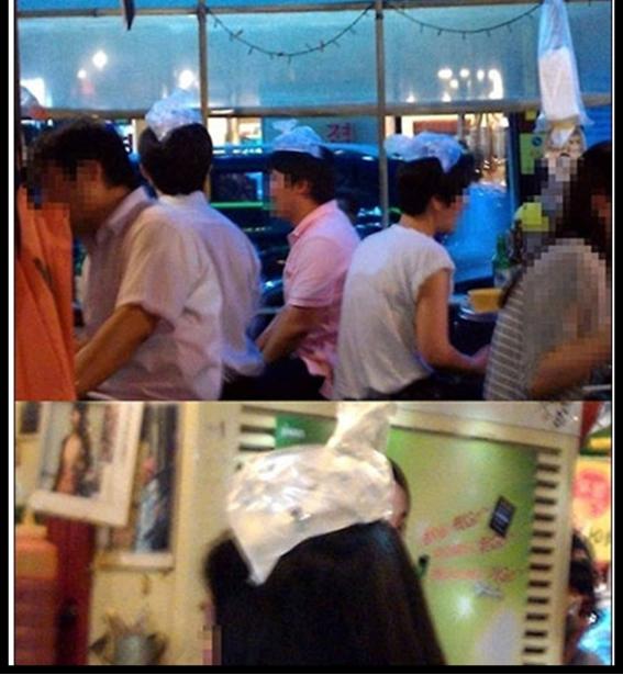 공개된 사진에는 음식점에 있는 손님들이 모두 머리 위에 얼음을 올리고 있어 웃음을 자아낸다.