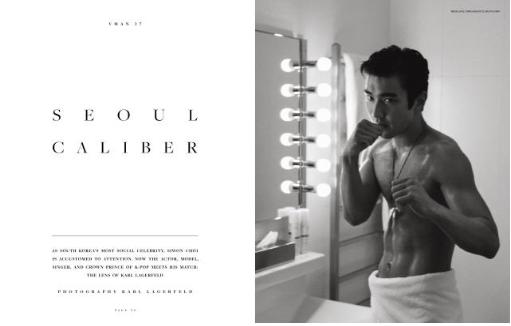 이번 화보에서 칼 라거펠트는 최시원의 다양한 모습을 직접 카메라로 담아 화보의 완성도를 높였으며, 최시원은 깊은 눈빛 연기는 물론 멋진 복근도 선보여 강렬한 남성미와 카리스마로 분위기를 더욱 배가시켰다.