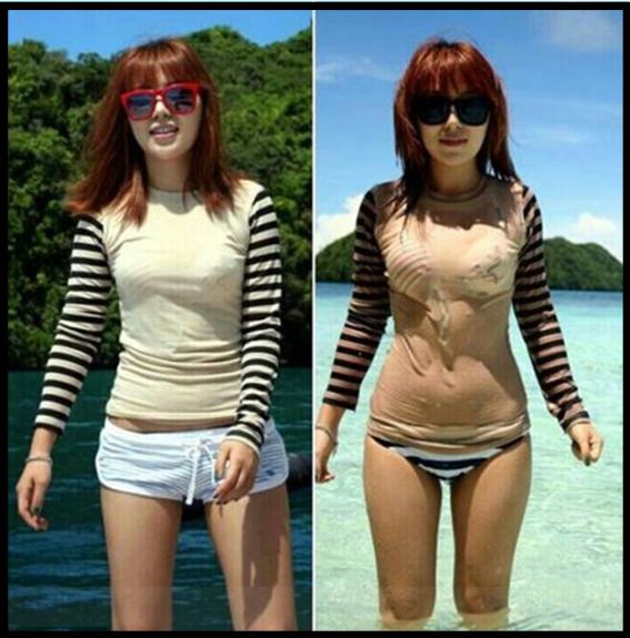 특히 그녀는 물 속에 들어갔다나온 후 사진에서 젖은 티셔츠로 인해 글래머러스한 몸매가 드러나 시선을 모았다.