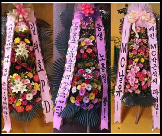 유재석은 화환에 ‘메인 MC 박근식씨 파이팅’이라는 문구를 넣어 웃음을 자아냈다.