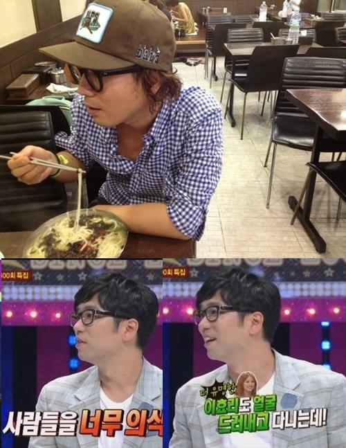 공개된 사진 속에는 정재형이 '연예인병'에 걸렸다는 것을 인증하듯 모자를 눌러쓰고 칼국수를 먹고 있다.