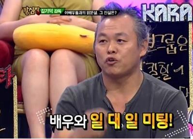 김 감독은 최근 진행된 SBS '강심장' 녹화에서 매 작품마다 불거졌던 여배우와의 염문설에 대해 "내 얼굴을 봐라. 여배우가 좋아할 인상이 아니다"고 말문을 연 김기덕 감독은 "여배우는 촬영 현장에서 매니저에게 둘러싸여있다. 접근할 틈이 없다"고 해명했다.
