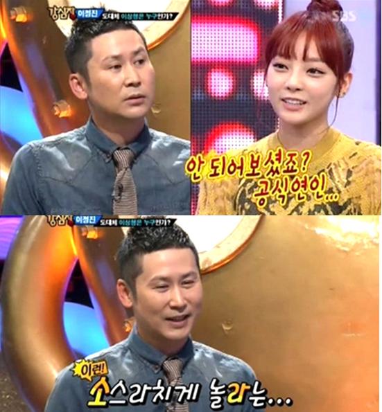 지난 4일 방송된 SBS ‘강심장’에서 MC 신동엽은 아이돌그룹 ‘비스트’ 용준형과 연인인 구하라에게 집요한 질문을했다.