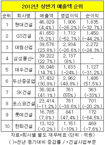 상반기 매출을 따질 경우 대림산업의 약진이 특히 눈에 띈다.