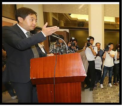 6일 안철수 원장 측 금태섭 변호사는 이날 오후 3시 서울 프레스센터에서 긴급 기자회견에서 "지난 4일 오전 7시57분께 새누리당 정준길 공보위원의 전화를 받았다"며 "(안 원장이) 대선에 출마할 경우 뇌물과 여자문제를 폭로하겠다며 대선 불출마를 종용했다"고 폭로했다.