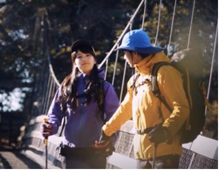 김수현은 트래킹 도중 구름다리를 건너는 수지를 향해 손을 내밀어 다정한 매너손을 선보였다.