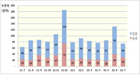 한편 발주부문별로는 공공부문이 8.2% 증가했다. 민간부문은 11.8% 증가한 것으로 나타났다.