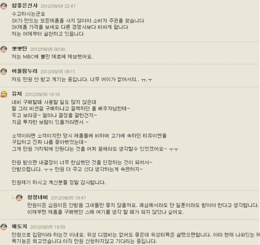 온라인상의 까페나 블로그 등을 통해 모여든 구매자들은 "고작 1만원 받고 입 다물라는 소린데 택도 없는 소리~", "방송사, 방통위를 불문하고 민원을 넣어 부당한 처사를 바로잡고 말 것"이라며 반발이 거세다.