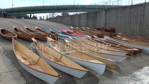 7일 아침 서울 난지 한강 공원 선착장. 구명복 조끼를 입은 시민들이 하나 둘 카누를 밀고 한강으로 나가 노를 젓는다. 그것도 자신이 직접 만든 것들이다.