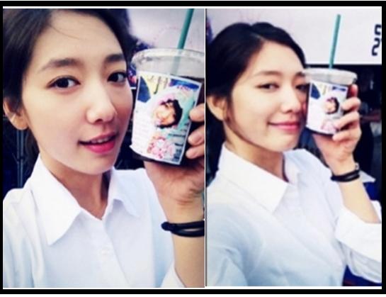 사진에서 박신혜는 팬들이 준 음료수를 들고 인증샷을 찍고 있다.