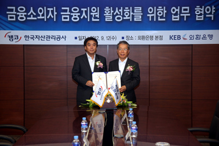 외환은행(은행장 윤용로)은 한국자산관리공사(캠코, 사장 장영철)와 금융소외자 금융지원 활성화를 위한 업무 협약을 체결하고 고금리와 원금상환 부담으로 고통받는 금융소외자를 위한 금융지원 활성화에 적극 나서기로 했다고 13일 밝혔다.