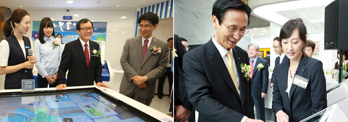 또한 스마트폰과 PC에서 미리 예약하고 은행을 방문하는 '예약상담 서비스', 고객과 직원이 하나의 기기를 통해 재무 상담을 진행하는 '멀티터치상담테이블'을 도입한 점도 인상적이다.