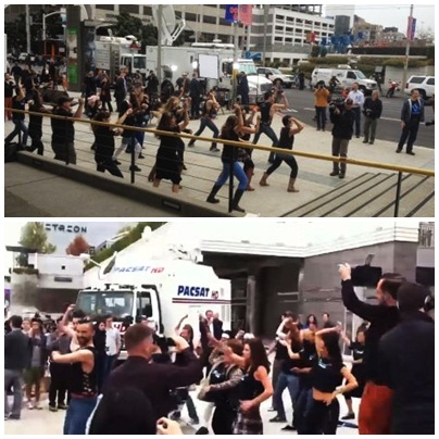 보도에 따르면 이들 앞에는 취재진과 관객들이 몰려들었으며 이 공연은 개인 방송 스트리밍 서비스 회사인 ‘유스트림 브로드캐스트’에서 준비한 것으로 밝혀졌다고 한다.