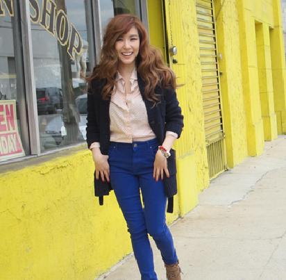 공개된 사진 속 티파니는 선명한 블루 컬러 스키니 진에 여성스러움이 물씬 풍기는 다트 무늬 셔츠와 카디건을 걸쳐 패셔니스타다운 면모를 과시했다.
