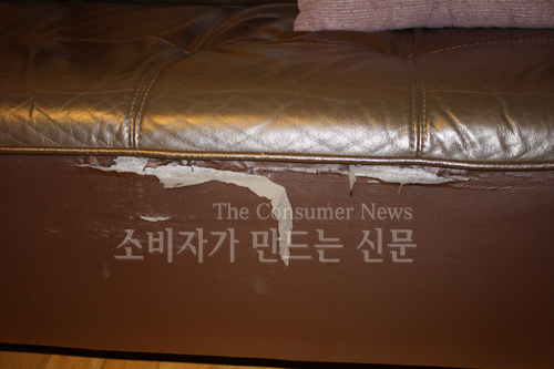 2년 정도 사용 후부터 제품의 중요 부위의 표면이 트기 시작하더니 훼손 범위가 점차 확대됐다. 소파 표면이 종이 껍질 처럼 벗겨지는 것이었다.