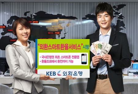 또 현재 외환은행에서 고시하고 있는 42개국 환율정보를 실시간으로 제공함은 물론 환율 확인 후 바로 스마트폰에서 환전까지 가능하도록 연계서비스를 구축해 이용자가 영업점까지 이동하는 사이 환율이 변동함으로써 발생할 수 있는 환리스크를 최소화할 수 있다는 장점이 있다.