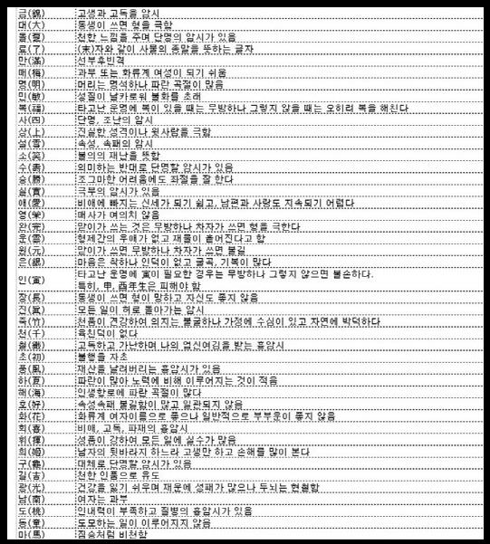 게시물에는 음양오행 사주로 이름에 안 좋은 한자를 풀이했다.