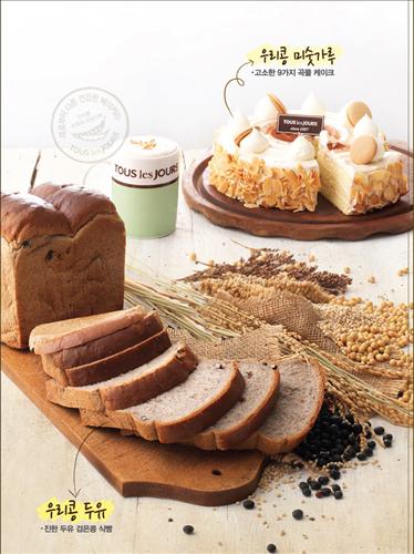 ‘진한 두유 검은콩 식빵’과 ‘고소한 9가지 곡물 케이크’, ‘우리땅 미숫가루 크림빵’, ‘우리콩 두유슈’ 등 빵 제품 4종과 ‘미숫가루 두유라떼’, ‘메이플 허니라떼’ 등 음료 2종이다.