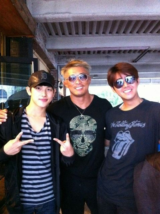공개된 사진 속 시완은 추성훈, 광희와 다정하게 포즈를 취하고 있다.