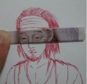 게시물을 올린 누리꾼은 볼펜으로 드라마 '미안하다 사랑한다'에 나온 소지섭을 그린 후 눈 부분에 1000원짜리 지폐를 올려놨다.