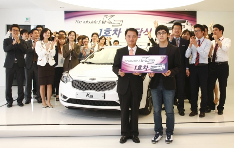 기아자동차는 18일 서울 압구정 국내영업본부 사옥에서 ‘K3’ 1호차 전달식을 갖고 본격 출고에 들어갔다.