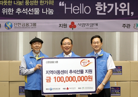 URL복사 기사공유하기 스크랩 프린트 메일보내기 글씨키우기 신한금융그룹(회장 한동우)은 18일 서울 태평로 신한은행 본점 대강당에서 전국 지역아동센터 아이들을 위한 ‘추석 선물꾸러미’ 전달행사를 실시했다. 추석선물세트는 학용품과 생필품, 식료품 등 총 18가지의 물품이 담겨있으며, 신한금융그룹은 이를 위해 총 1억원을 기탁했다. 오는 22일에는 전국 6개 지역(인천, 일산, 부산, 광주, 충남, 충북)의 신한은행과 신한카드 임직원 약 700여명이 2천500개의 선물을 만들어 직접 배달할 예정이다. 저작권자 © 소비자가 만드는 신문 무단전재 및 재배포 금지 임민희 기자 다른기사 보기 URL복사 기사공유하기 주요기사 쿠팡 정보유출 사고로 피싱 시도 가능성 높아... 금융당국 '소비자경보' 발령 김동연 지사, 내년에도 다보스포럼 간다...3년 연속 공식 초청 받아 금호타이어, 폴란드 오폴레 지역에 첫 유럽 공장 짓는다...2028년 8월 가동 예정 국산차 11월 판매 3.9%↓, KGM만 웃었다...베스트셀링카는 ‘쏘렌토’ 김동연 지사, 기후보험 전국 확대 방안 논의..."대한민국의 뉴노멀로" 한신평, 키움·메리츠증권 등급 전망 '긍정적'으로 상향
