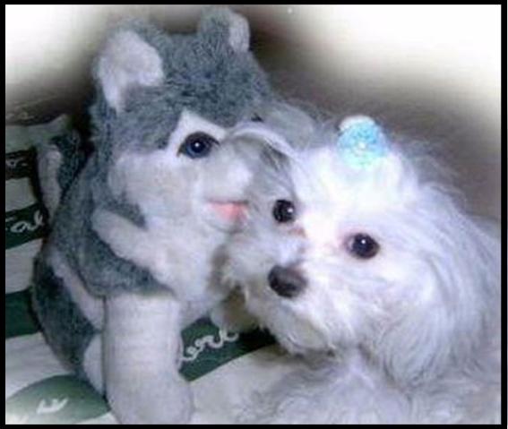 공개된 사진에는 브라우니와 말티즈 강아지 한 마리가 침대 위에서 다정한 모습이 포착됐다.